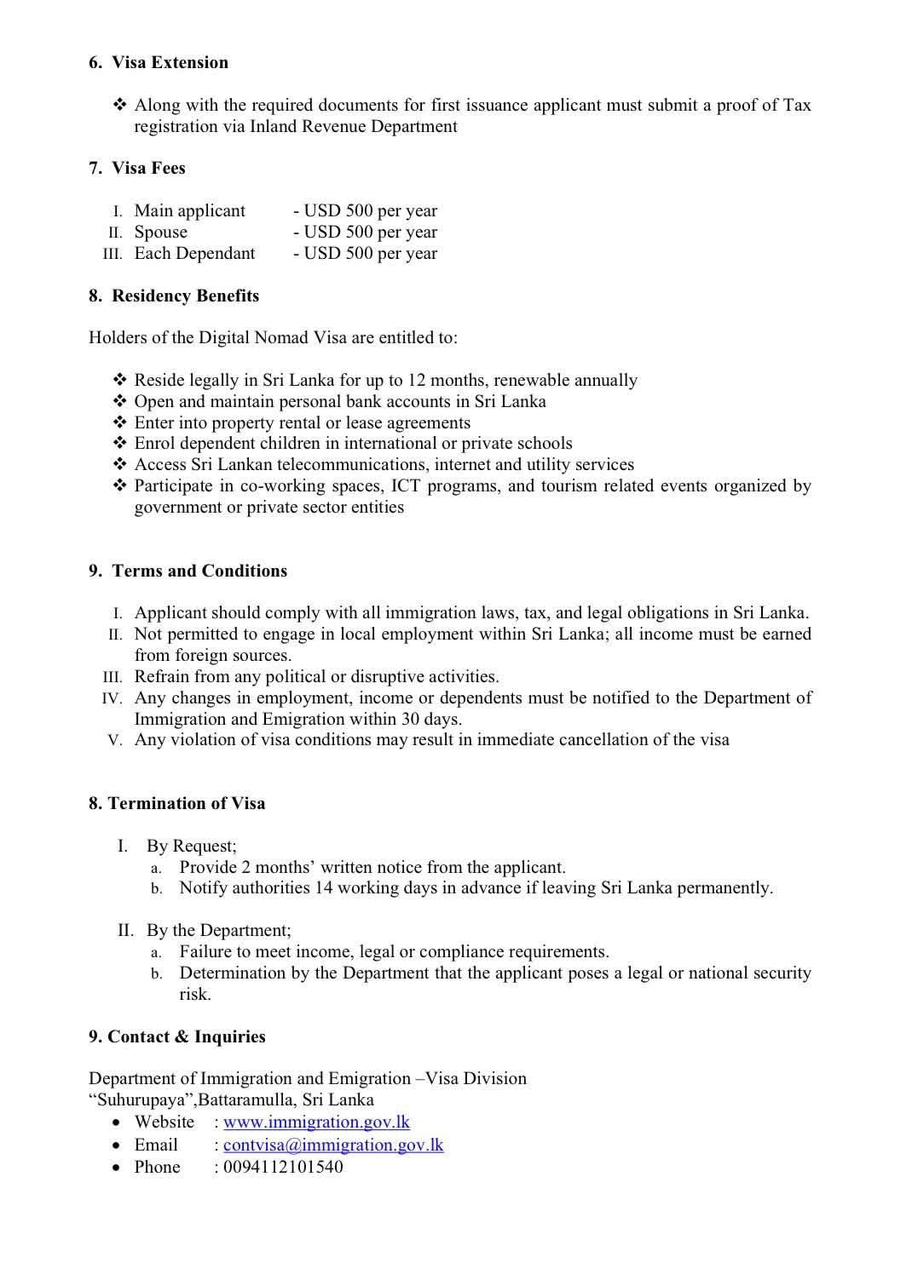 වැඩිදුර තොරතුරු සහ අයදුම්පත් ලබා ගැනීම සඳහා www.immigration.gov.lk වෙබ් අඩවියට පිවිසෙන්න.